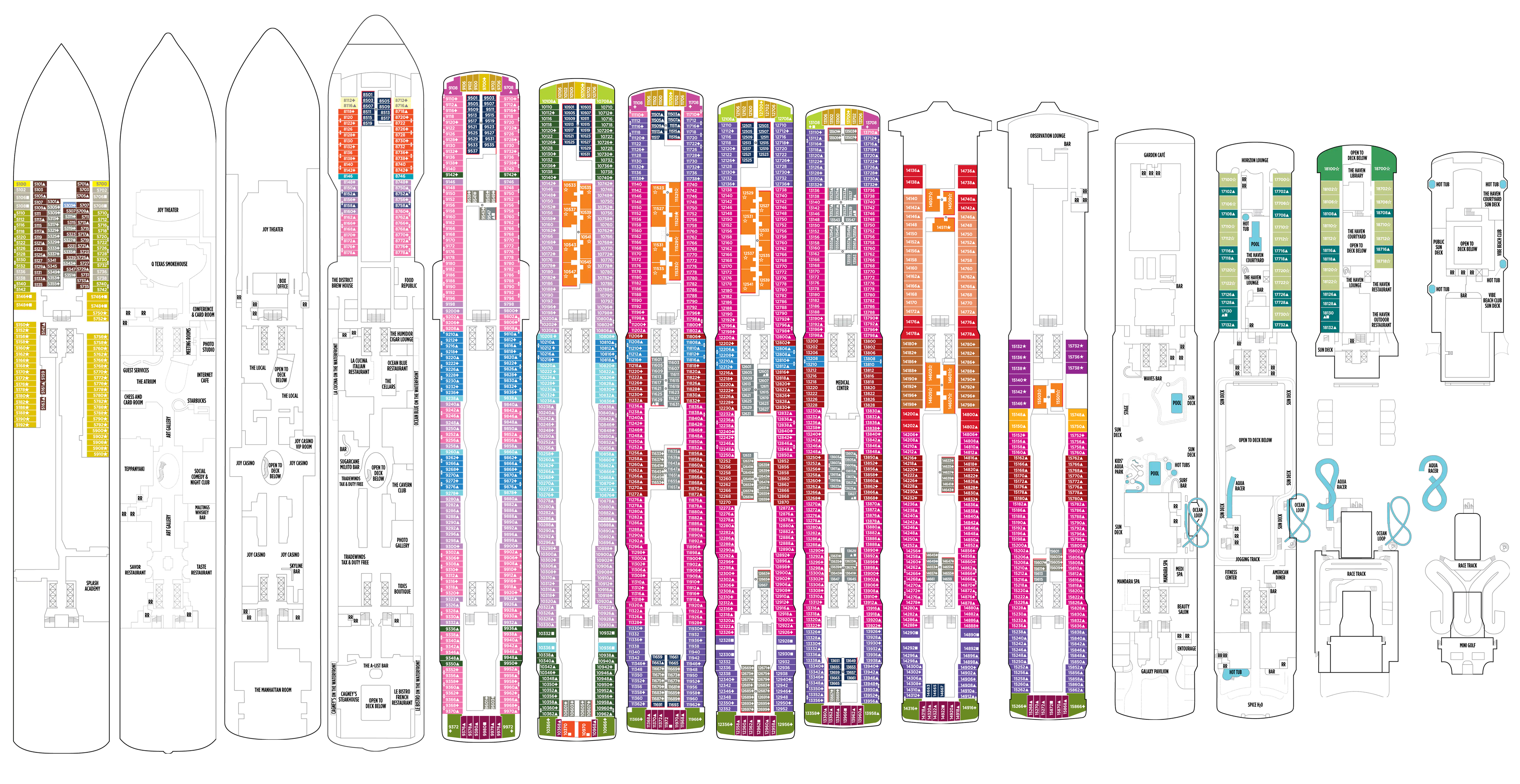 Počet palúb: 20 / 16 pre pasažierov