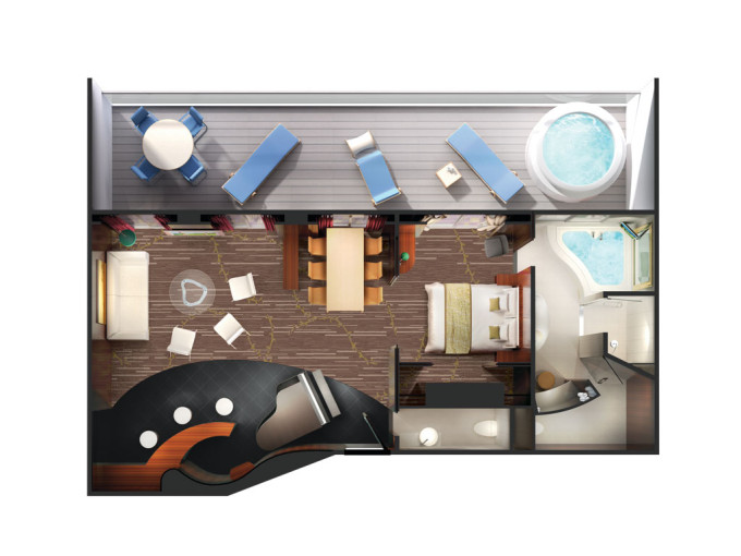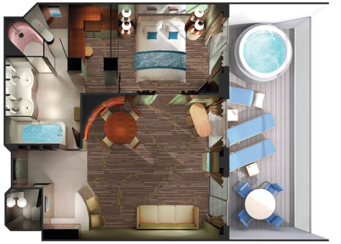 S5 - Deluxe Owner's Suite 128 m² / balkón 45 m². 12. paluba - vpredu. Max 4 osoby. Výhody Suite. 14 760 € 7 380 € za osobu