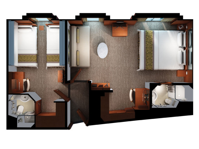 S4 - Deluxe Family Suite od 56 m² / balkón 9 m². 9. paluba - vpredu. Max 5 osôb. Výhody Suite. 19 114 € 9 557 € za osobu