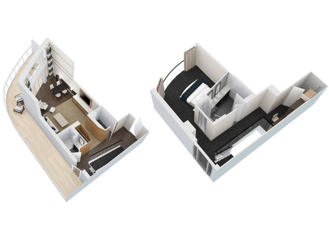 RL - Royal Loft Suite s balkónom 152 m² + balkón s vírivkou 51 m². 2-podlažný apartmán. 2 spálne, 2 kúpeľne, 2 balkóny. Max 6 osôb. Výhody Royal Suite Star Class. 8 244 € 4 122 € za osobu